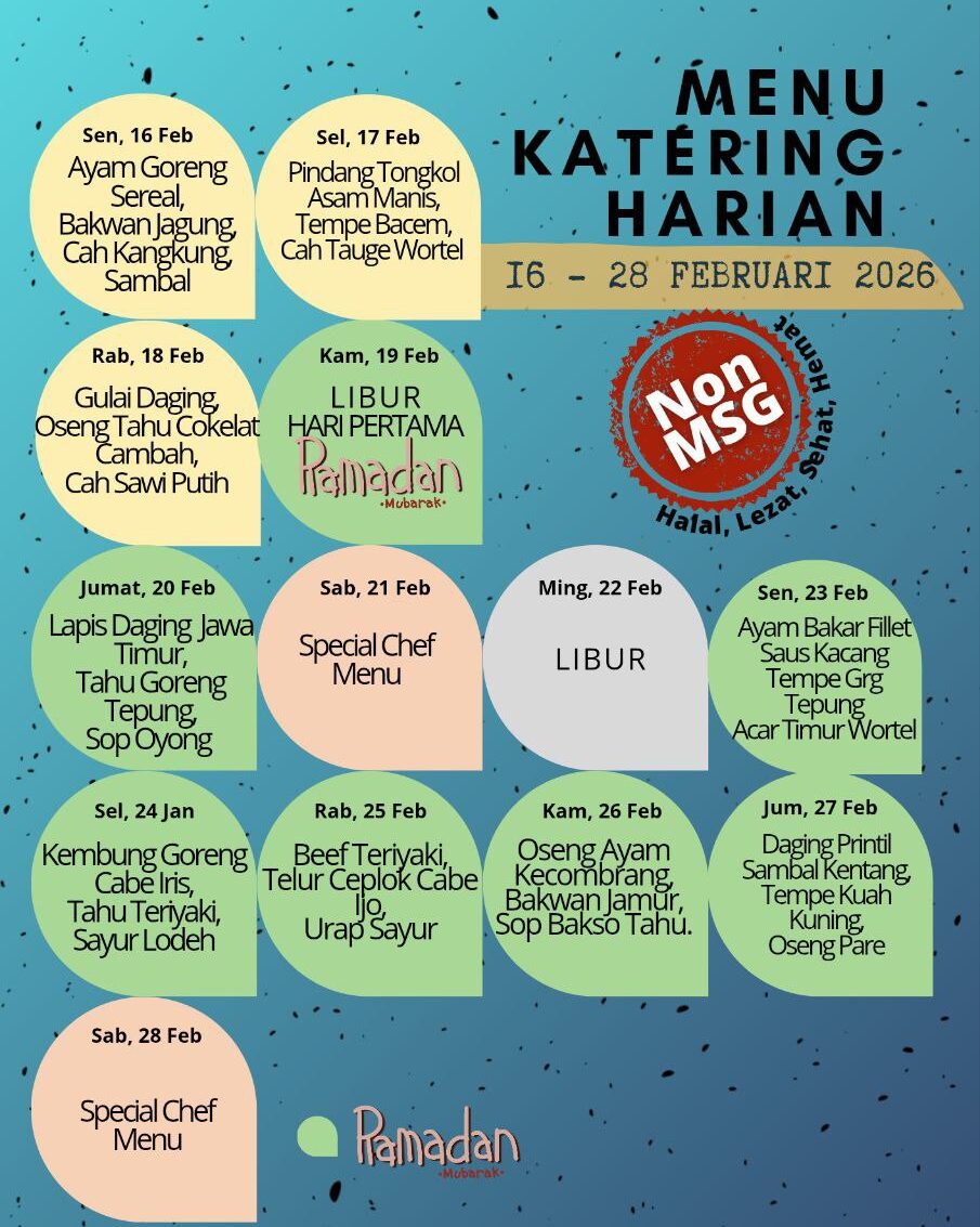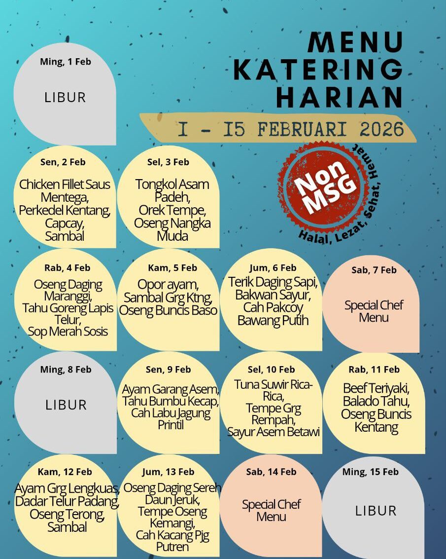 Kualitas makanan yang terjamin, dengan Harga yang terjangkau. Berikan nutrisi yang cukup dan Boost produktifitas perusahaanmu